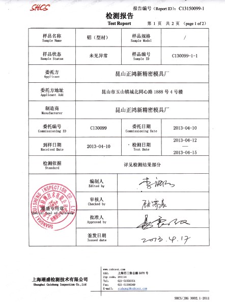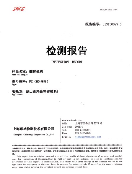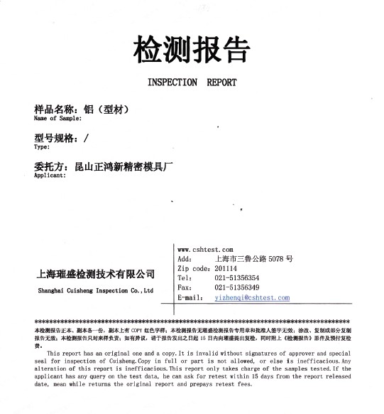 首頁 > 關于正鴻新 > 檢驗報告